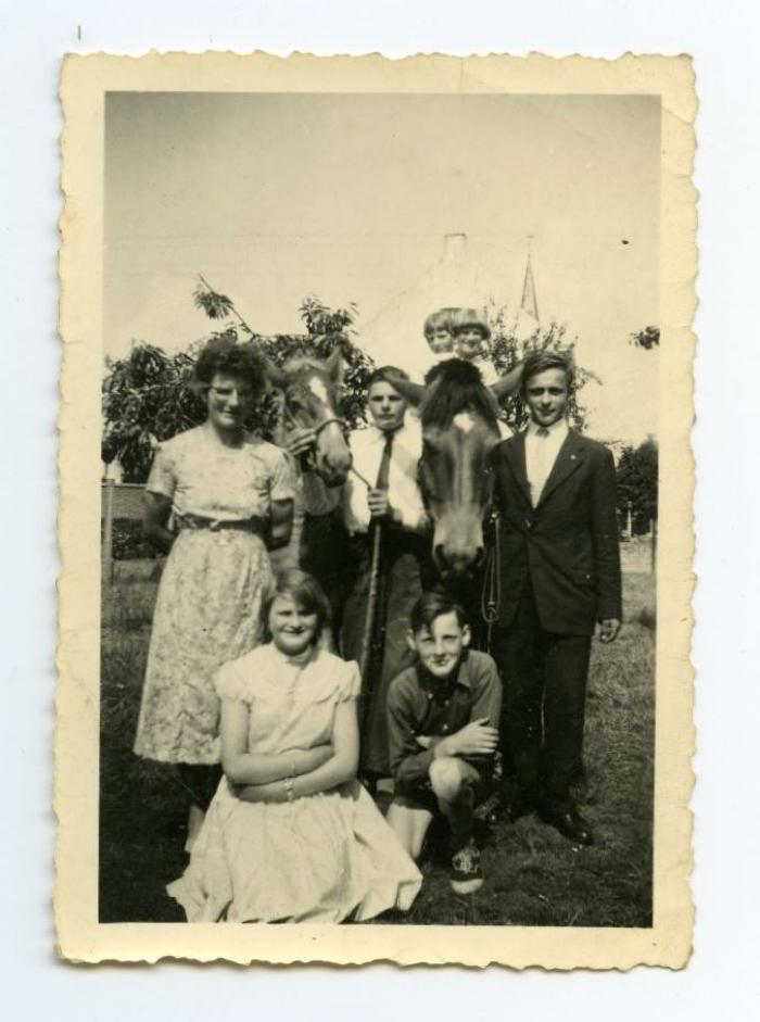 Familieportret met de paarden op het hof. Met José Vercauteren en Laurent Haeverbeke.