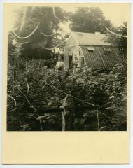 Barones de Crombrugghe bij de serre tussen de frambozen