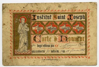 Carte d'Honneur Prosper Maeyens, Knesselare, 1882